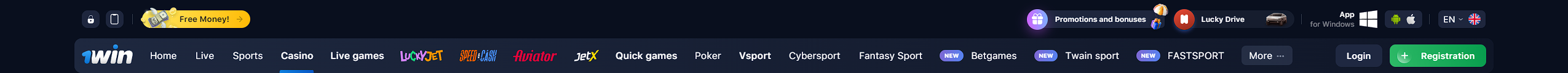 The official 1Win casino site features a modern and distinctive interface that sets it apart from other platforms. Once installed, users can explore a dynamic virtual casino designed to resemble a real slot machine hall. The main screen is focused on the game room and navigation panel, offering instant access to all major categories.